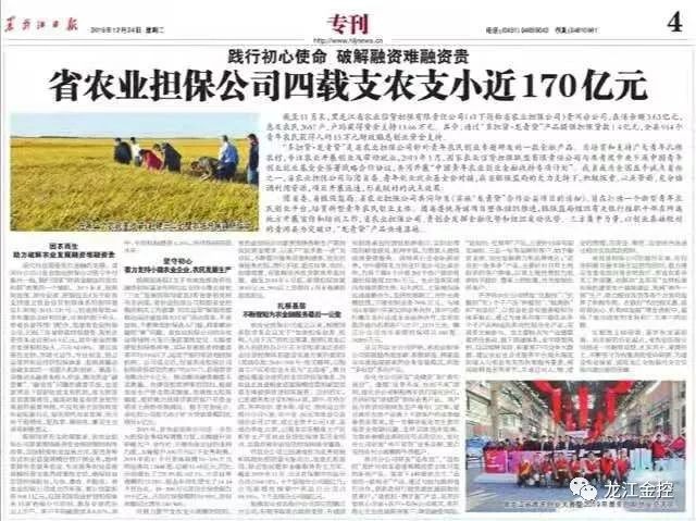 黑龍江省農(nóng)業(yè)信貸擔(dān)保有限責(zé)任公司緊緊圍繞推進(jìn)農(nóng)業(yè)供給側(cè)結(jié)構(gòu)性改革、加快轉(zhuǎn)變農(nóng)業(yè)發(fā)展方式、促進(jìn)多種形式農(nóng)業(yè)適度規(guī)模經(jīng)營(yíng)開展業(yè)務(wù),成立四年來,累計(jì)貸款擔(dān)保168.1億元,位居全國(guó)農(nóng)業(yè)信貸擔(dān)保體系33家省級(jí)公司前列,惠及全省農(nóng)民22.3萬戶。
